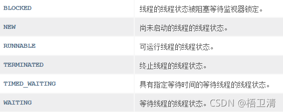 Java中线程共有6种状态,这六种状态分别是: