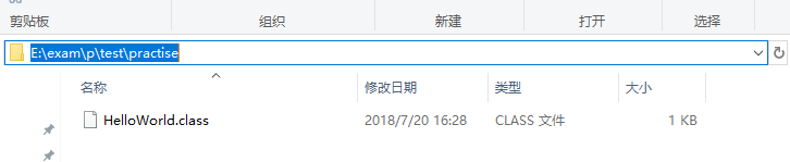 将HelloWorld.class文件放入到相应的文件夹E:\exam\p\test\practise后,