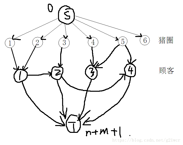 首先从源点向每个猪圈连一条边,容量为猪的数量。