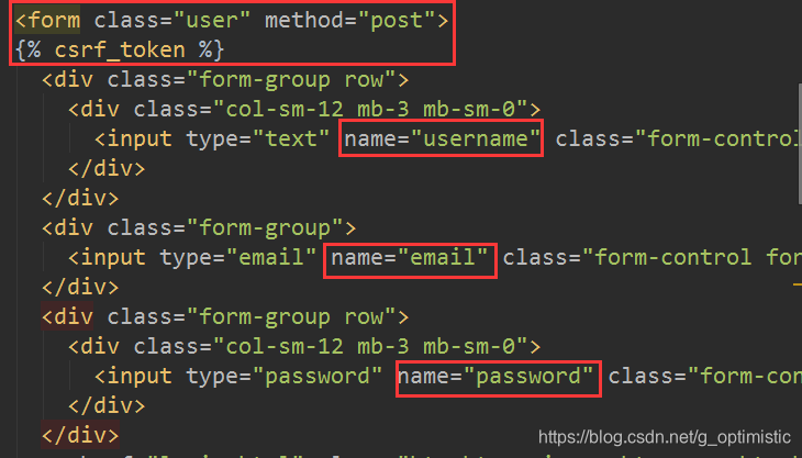因为数据库只有三个字段,用户名,邮箱,密码,所以表单就写三个就行