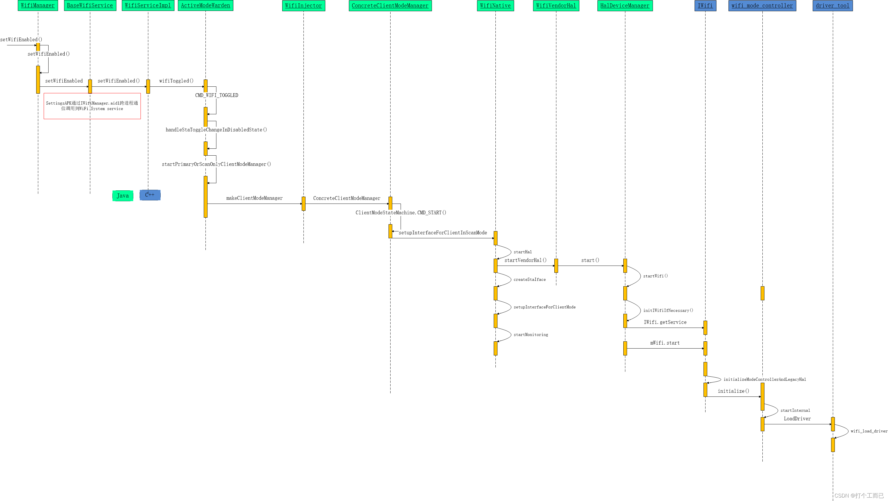 这篇博客补充了Android 12中WiFi开启的调用流程,强调了理解Android的apk-frameworks-HAL-Driver-hardware架构及主要功能模块的重要性,适合WiFi学习者和Android开发者。
