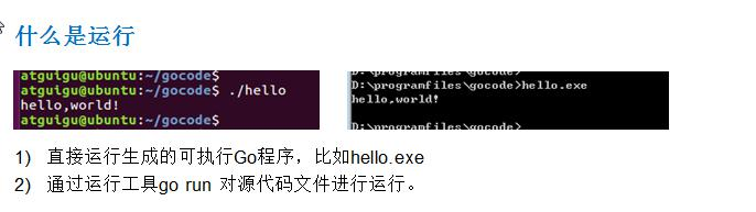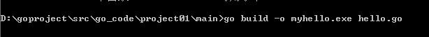注释:将hello.go的原代码文件编译成 myhello.exe可执行文件
