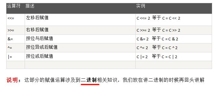 6)位运算符(>>=, <<=, &=, ^=, !=)