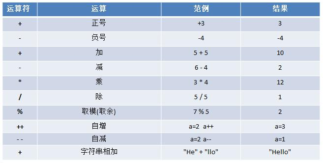 1)算数运算符(+,-,*,/,%取余,自增,自减,字符串拼接)