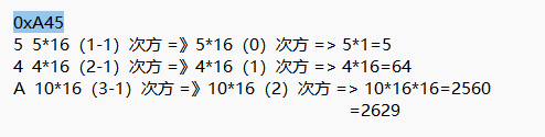 公式:从低位开始(右边开始),将每个位上的数提取出来,乘以16的(位数-1)次方,然后求和