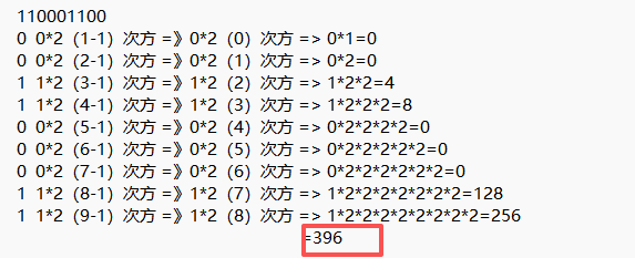 公式:从低位开始(右边开始),将每个位上的数提取出来,乘以2的(位数-1)次方,然后求和