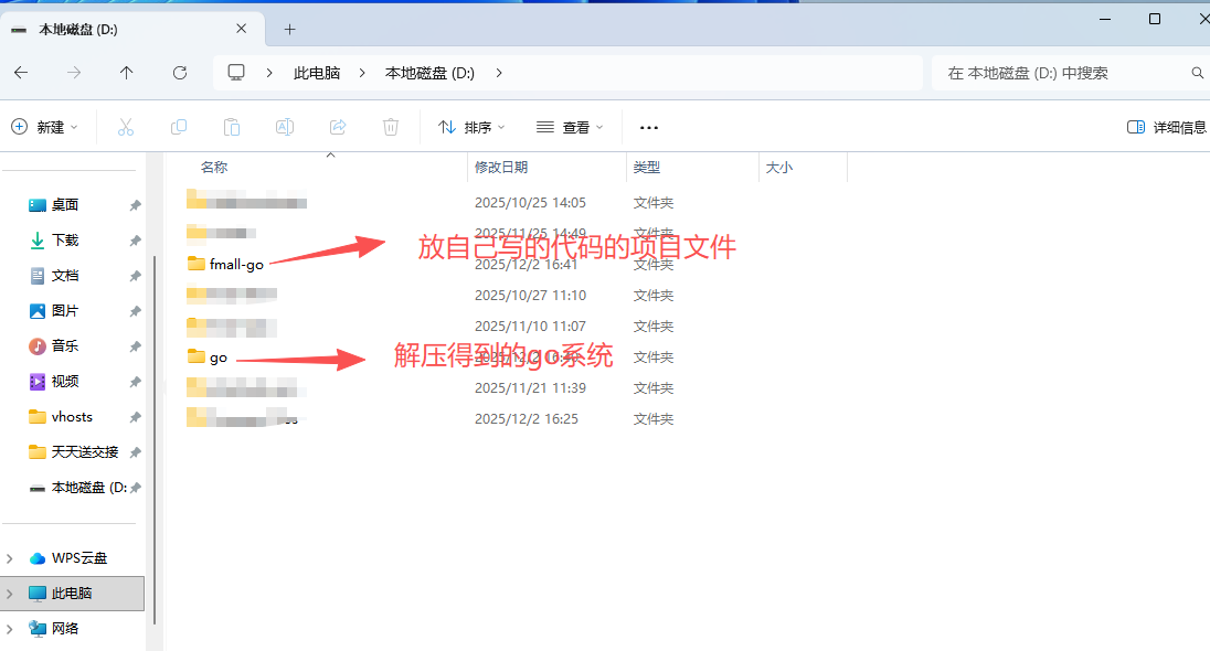 2)将压缩包解压,得到go的系统,将的到的go系统复制到你要开发的项目同级