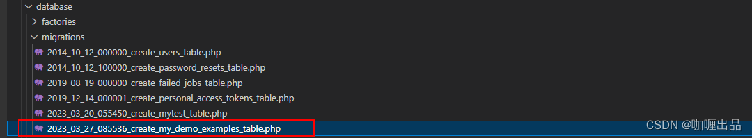 命令执行后,会在 \databases\migrations\ 下生成一个 migration 文件,如下图: