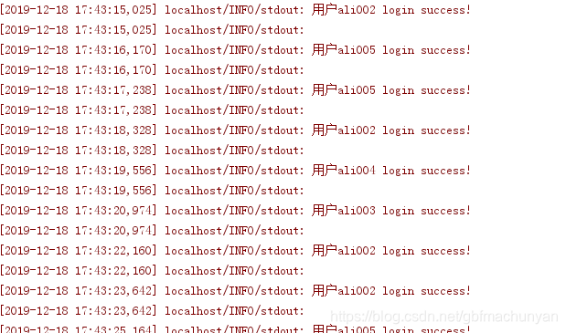 同时控制台输出用户登录信息,可以看到登录用户名是随机的