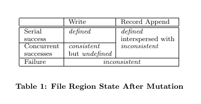 GFS的一致性模型是相对宽松的,前面也有提到,比起强一致性,GFS更关心的是高吞吐量和存储大文件的能力。下面我们将对GFS的一致性模型进行介绍。