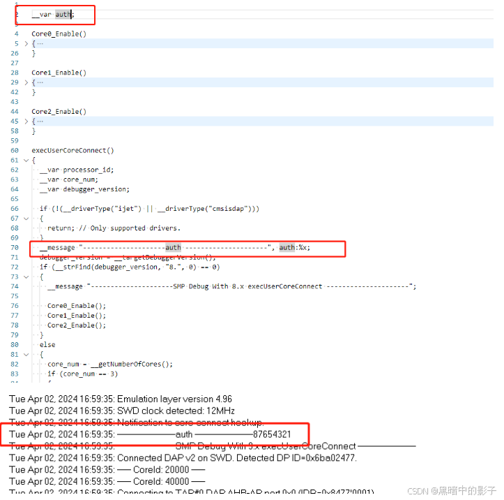 由于jlink默认只能认到core0,并且core1和core2的启动均由core0来控制,因此首先是通过core0对core1/core2进行初始化,然后再通过AP的选择来控制core1/core2。