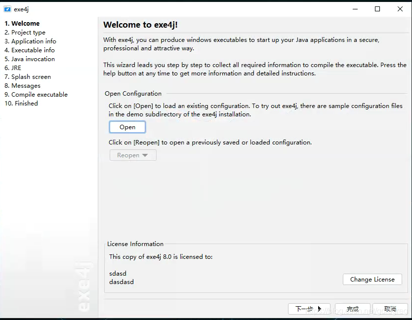 官网地址:https://exe4j.apponic.com/,该地址下载的程序需要注册,不然,每次执行打好的exe程序都会跳出欢迎界面,本站提供下载好的程序以及注册码,请点击链接获取