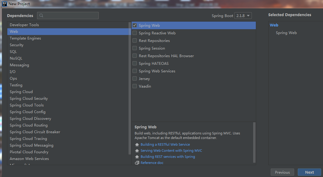 Create New Project -> Spring Initializr -> Project SDK 默认1.8,Initializr Service URL 默认https://start.spring.io -> Next