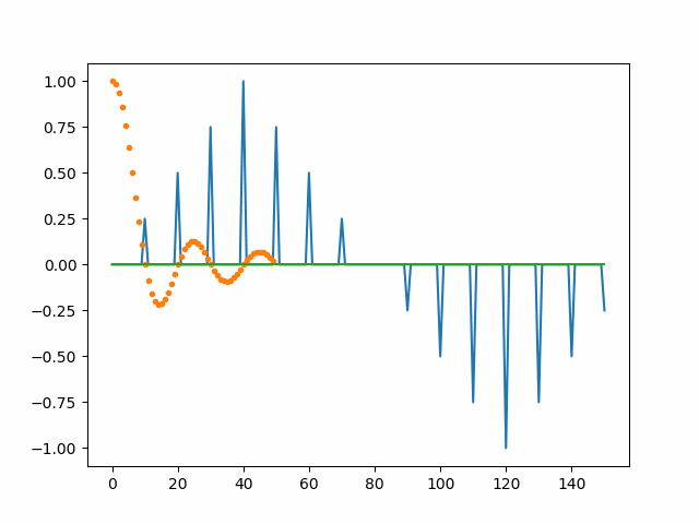 扣点可以理解成插值的逆操作,我们不仅需要把我们想扣的点置0,还需要将这个点对其余点的影响消除。我们以对FFT的结果将能量最大的点进行扣选,主要的步骤如下: