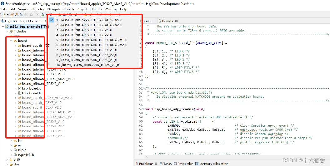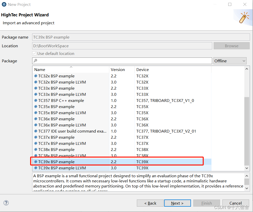 我们手中的TC397开发板是KIT_A2G_TC397XA_TFT,所有我们下边选择TC39x BSP example。
