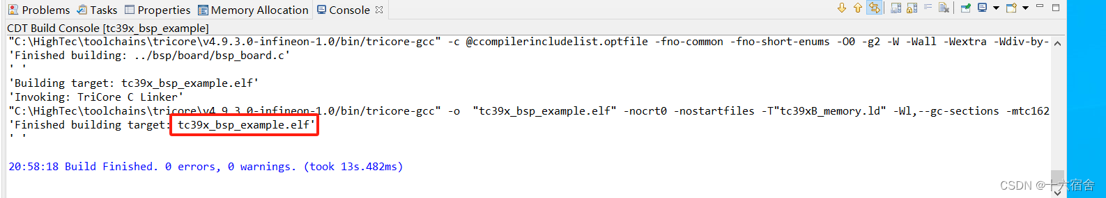 - ld:链接脚本,来自MC-ISAR_AS422_TC3xx_BASIC_2.20.0\DemoWorkspace\McalDemo\TC39B\1_ToolEnv\0_Build\1_Config\Config_Tricore_Gnuc目录下的链接文件,后缀名需要改成.ld。