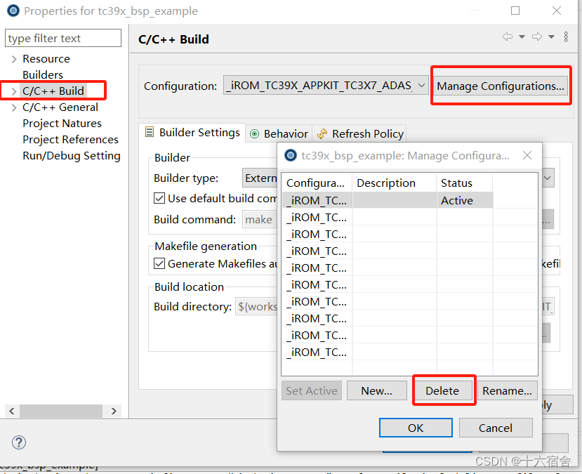 点击工程,右键点击Properties,打开工程属性,删除不需要的Build Configuration。