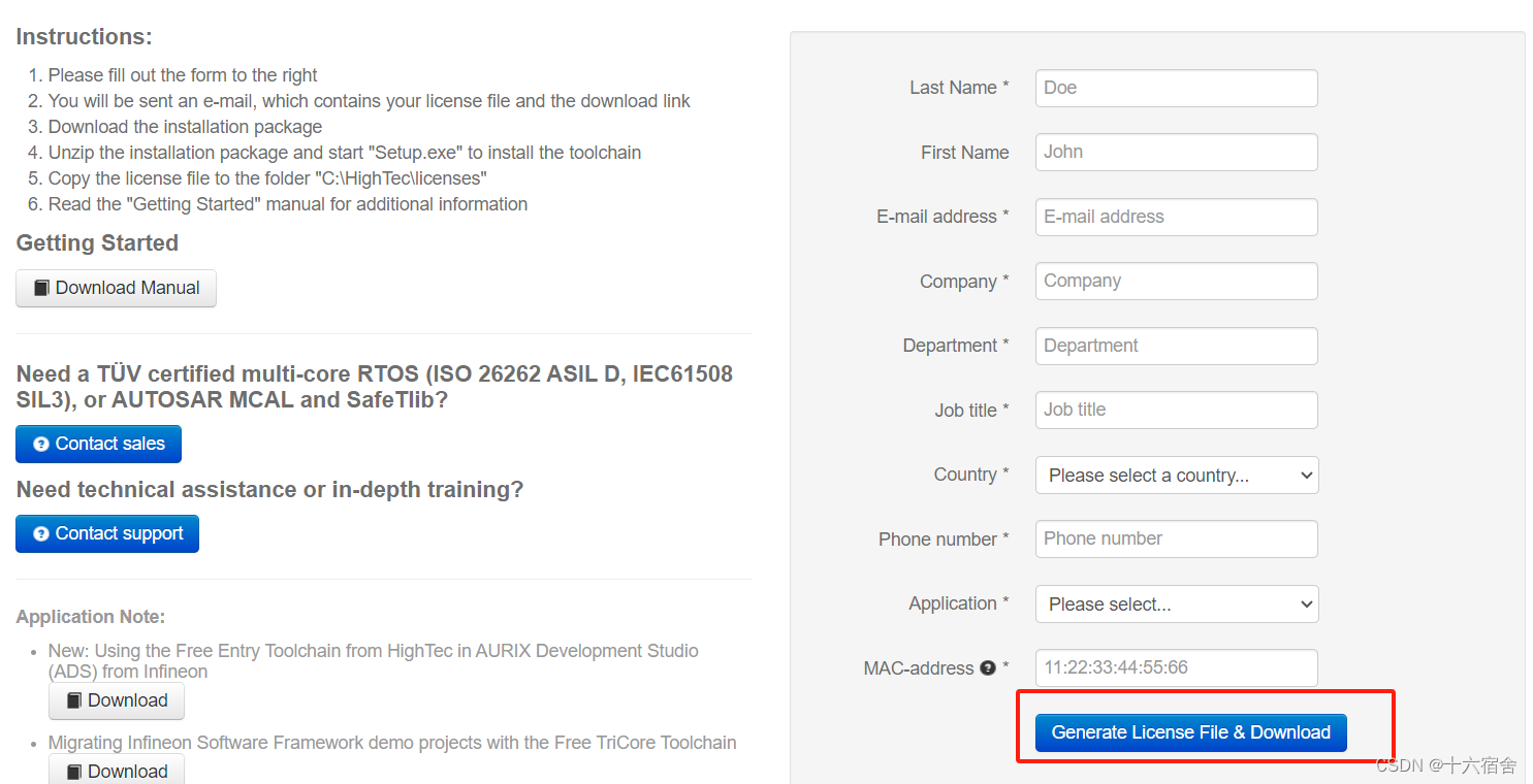 点击这里这里跳转HighTec官网下载一年免费使用HighTec。需要输入本地的MAC地址生成对应的License文件。
