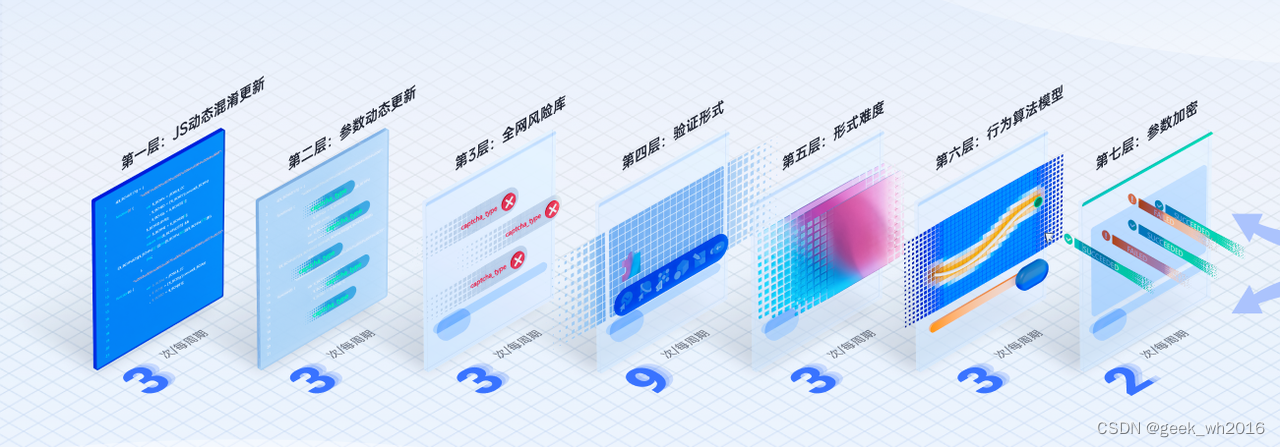 在大家都将目光聚焦到比特币中的PoW时,极验选择另辟蹊径将这一共识算法应用到行为验证4.0中,这一创新无疑使验证码的安全性得到了更高的保证。在极验创立的十年以来,一直致力于以创新作为发展的驱动力,除PoW工作量证明外,极验行为验4.0还首创了七层动态安全防御体系,动态防御使极验在与黑灰产的博弈中占据主动权,二者共同打造了安全的行为验4.0