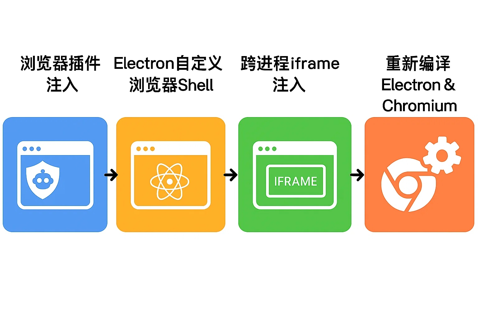 为了实现万无一失的不可检测性,开发者可以采取极端手段:分叉、重新编译并定制 Electron/Chromium 源代码本身。这会将原生探针直接嵌入到 Blink 渲染引擎中,在 C++ 层面拦截 Canvas 操作,而无需修改 JavaScript,从而避开通过 toString() 方法扫描篡改函数的防御机制。