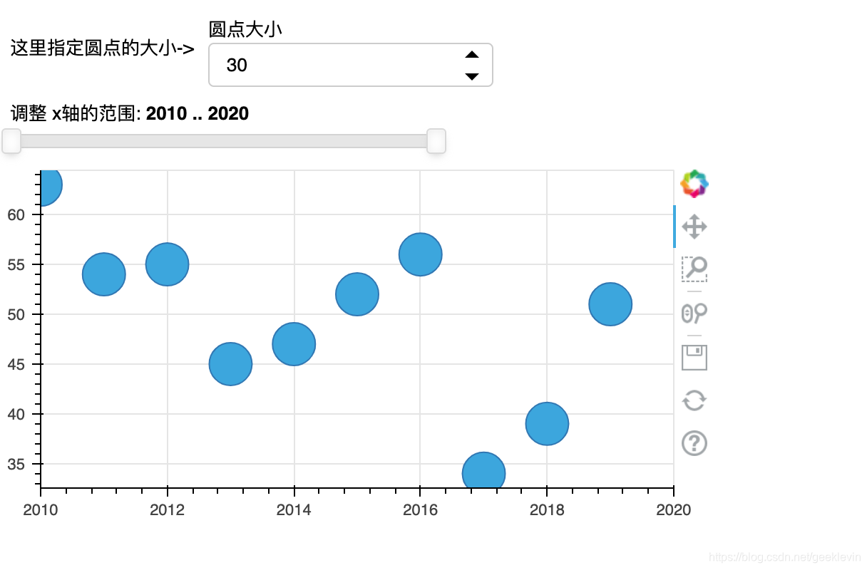 来个复杂点的,下面是个散点图,可以通过设置改变圆点大小和轴距缩放。
