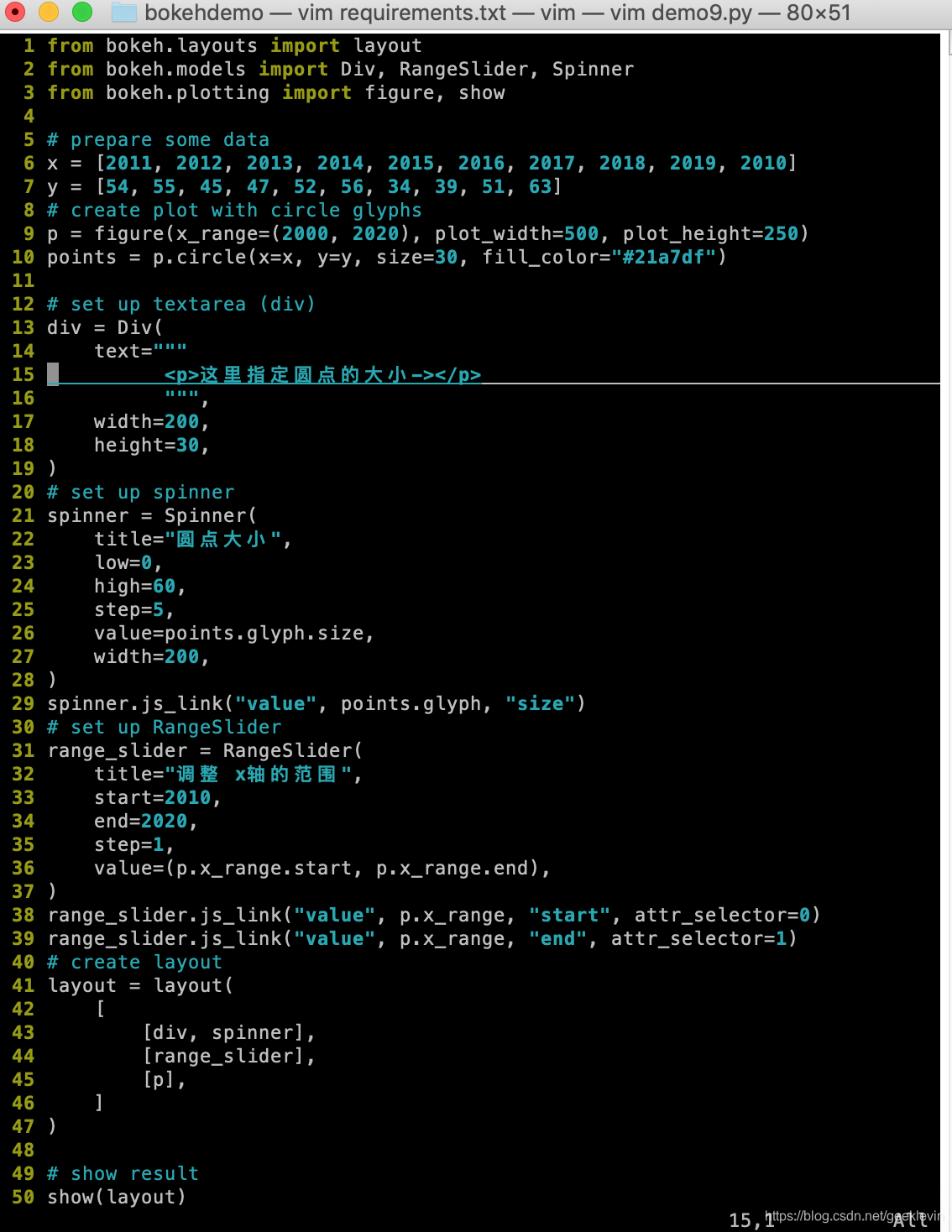 这里展示了三种使用,分析的重点在于对数据和图表的把握,更多内容请移步:https://docs.bokeh.org/en/latest/docs/first_steps.html