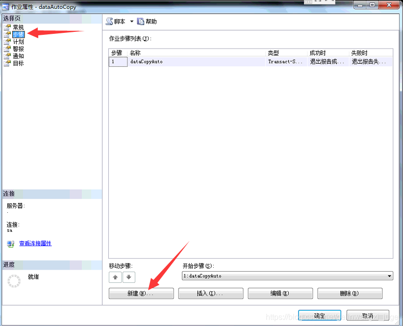然后不忙点击确定,继续点击左边的步骤--->新建,如图