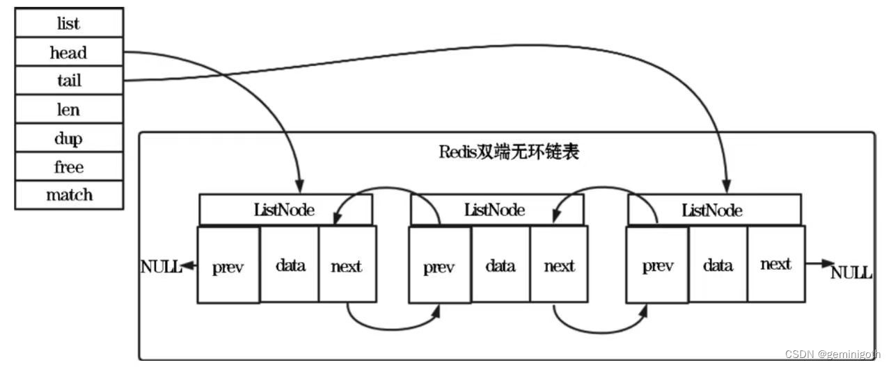1、双向五环:链表节点带有前驱、后继指针获取某个节点的前驱和后继节点的时间复杂度为O(1),表头节点的前驱指针和表尾节点的后继指针都指向NULL,对链表的访问以null为终点。