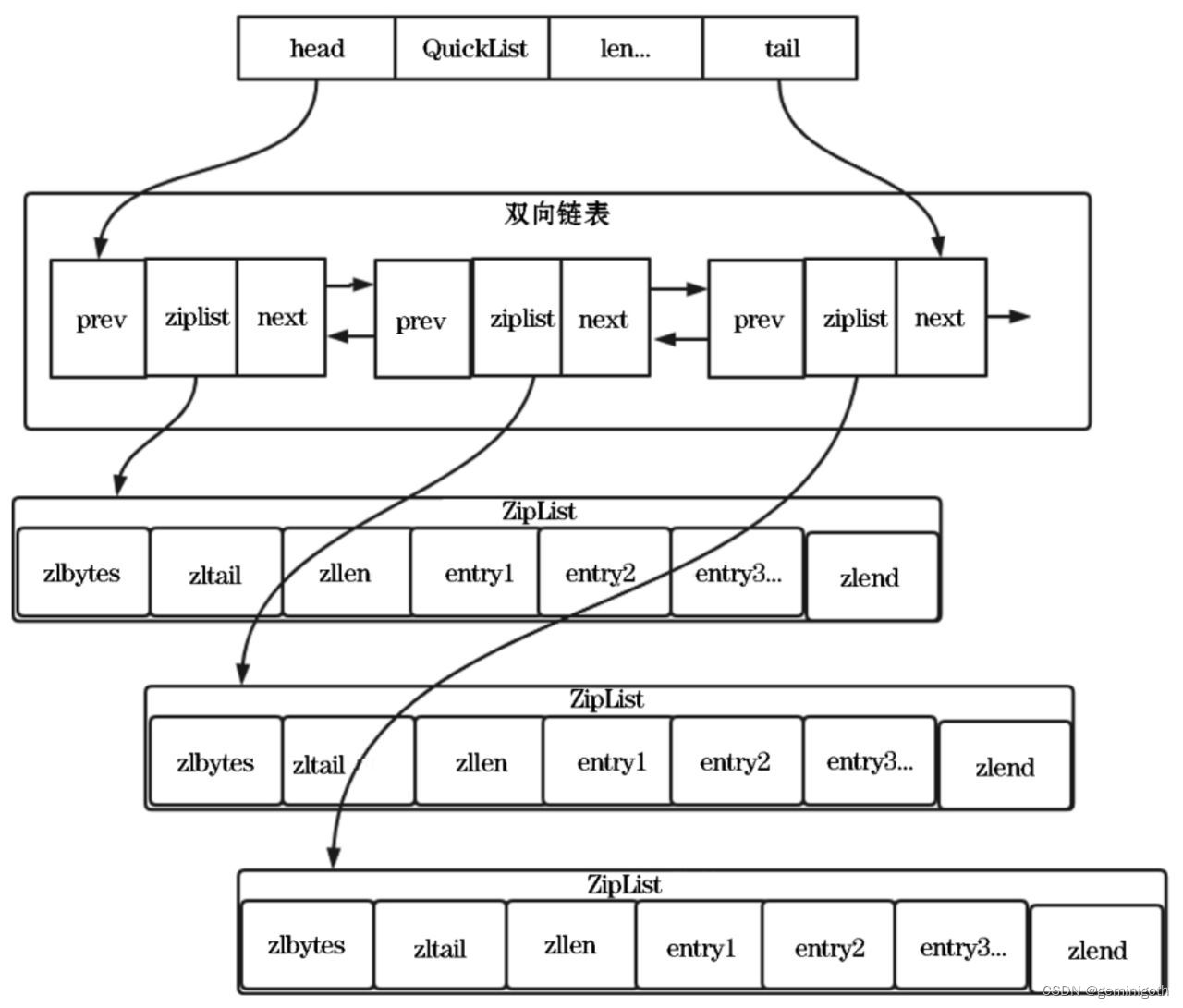 实际上QuickList(快速列表)是ZipList和LinkedList的结合体,它将LinkedList按段切分,每一段使用ZipList紧凑存储来节省空间,多个ZipList之间使用双向指针串接起来。QuickList在Redis 3.2版本引入。在引入QuickList之前,Redis采用压缩链表以及双向链表作为List的底层视线。当元素个数比较少并且元素长度比较小时,Redis采用ZipList作为底层存储结构。当任意一个条件不满足时,Redis采用链表作为底层存储结构。这么做的主要原因是:当元素长度较小时,使用ZipList虽然可以节省空间,但储存空间是连续的;当元素个数比较多时,修改元素时必须重新分配存储空间,会影响Redis的执行效率,所以采用双向链表。