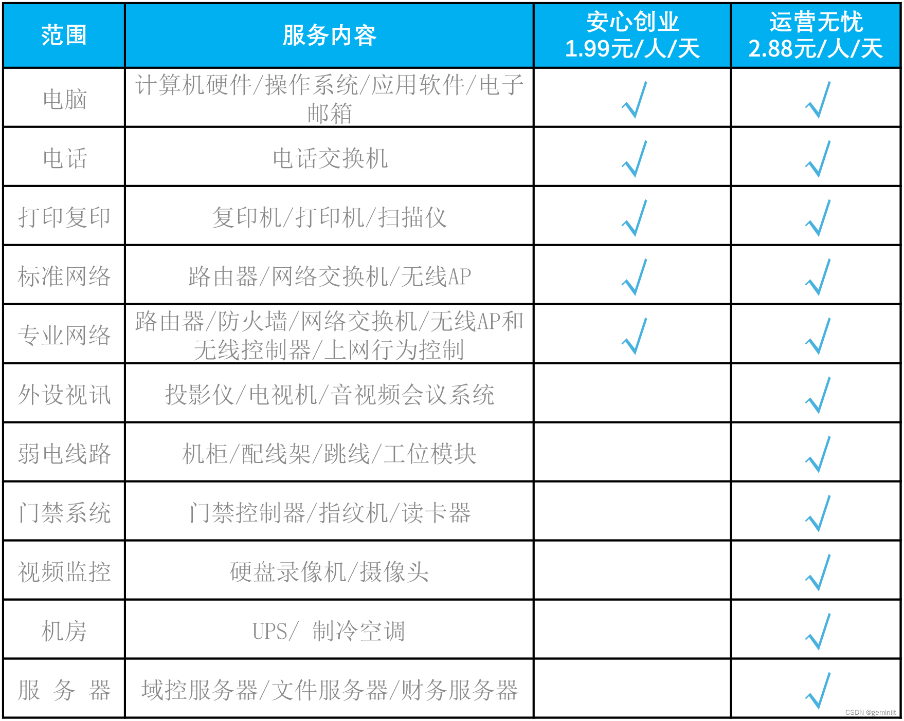 很多客户在第一次接触同创双子服务时都会问,为什么同创双子是按公司人数收费,那我们做服务,最终服务的是企业员工,是人,而并非是设备,IT设备其实也是为人提供服务的,所以按人收费是最符合市场的。