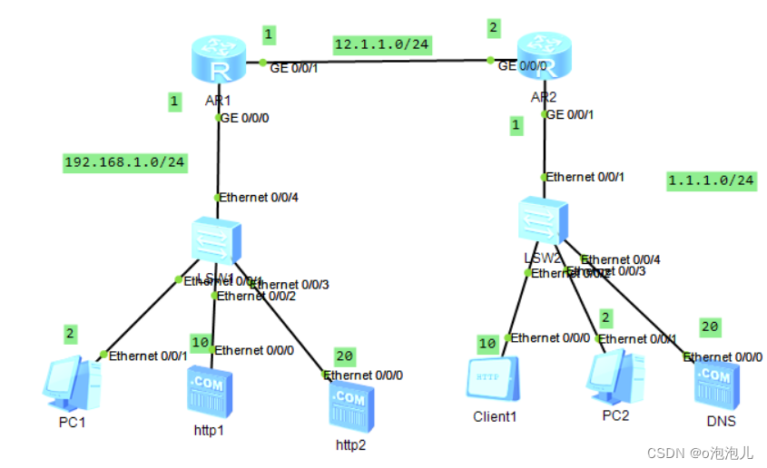 client访问HTTP1和HTTP2,必须通过AR1的端口g0/0/1