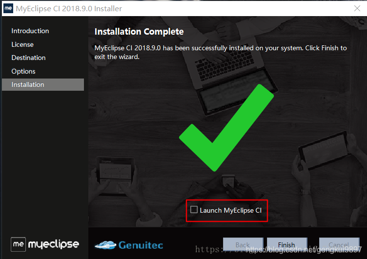 首先将myeclipse2018安装好,之后不要勾选 Launch MyEclipse CI ,直接点击Finish。