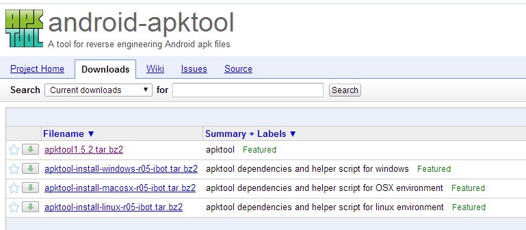 下载地址http://code.google.com/p/android-apktool/downloads/list