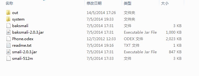 输入java -jar baksmali-2.0.3.jar -d ./system/framework -x Phone.dex