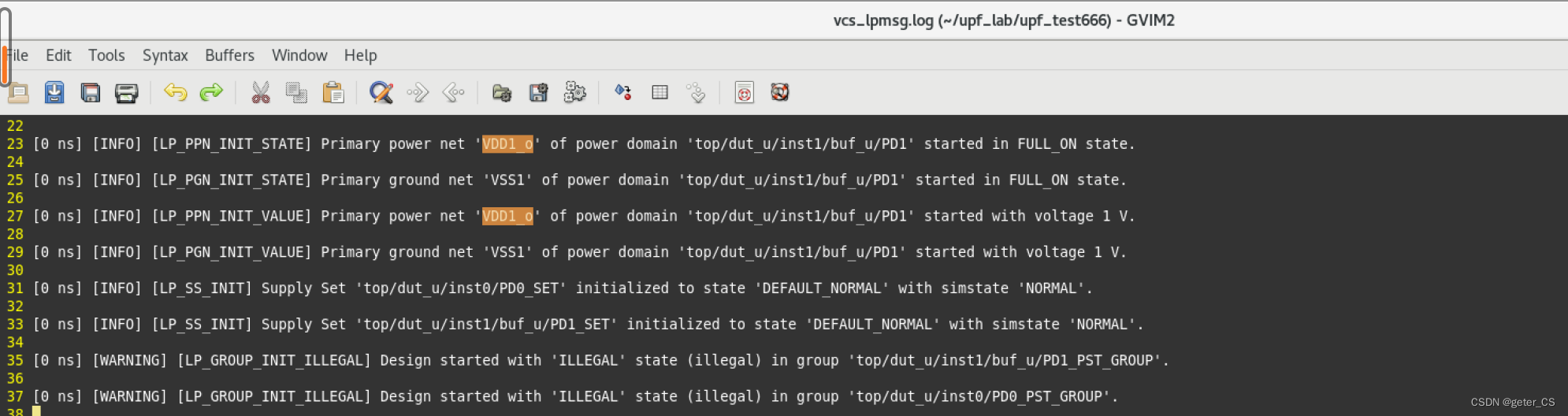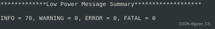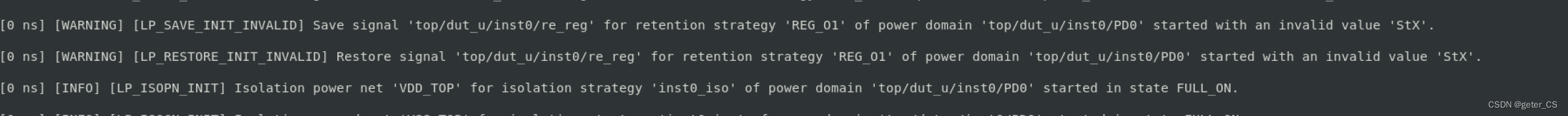但是注意仿真的low power log中会有WARNING,警告如下: