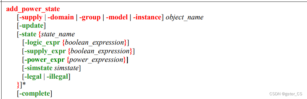 add_power_state PD_TOP_SET -state P_ON {-supply_expr {power == {FULL_ON 0.8}}}