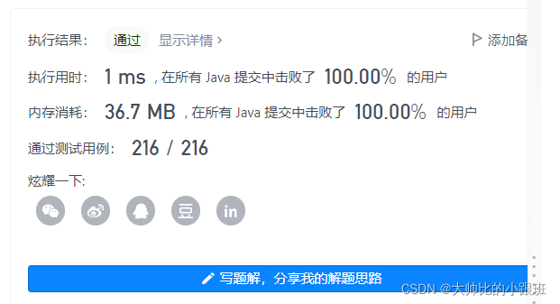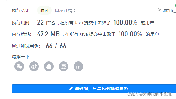 解题思路:可以采用排序加贪心的思想来解决此问题,我们可以先将需要撞击的行星质量按从小到大排序,定义一个行星最大质量rightMax,让其最初等于mass,然后贪心对数组进行遍历,如果rightMax >= asteroids[i],则更新rightMax并且继续向后走,如果小于直接返回false,代码和提交截图如下图所示:
