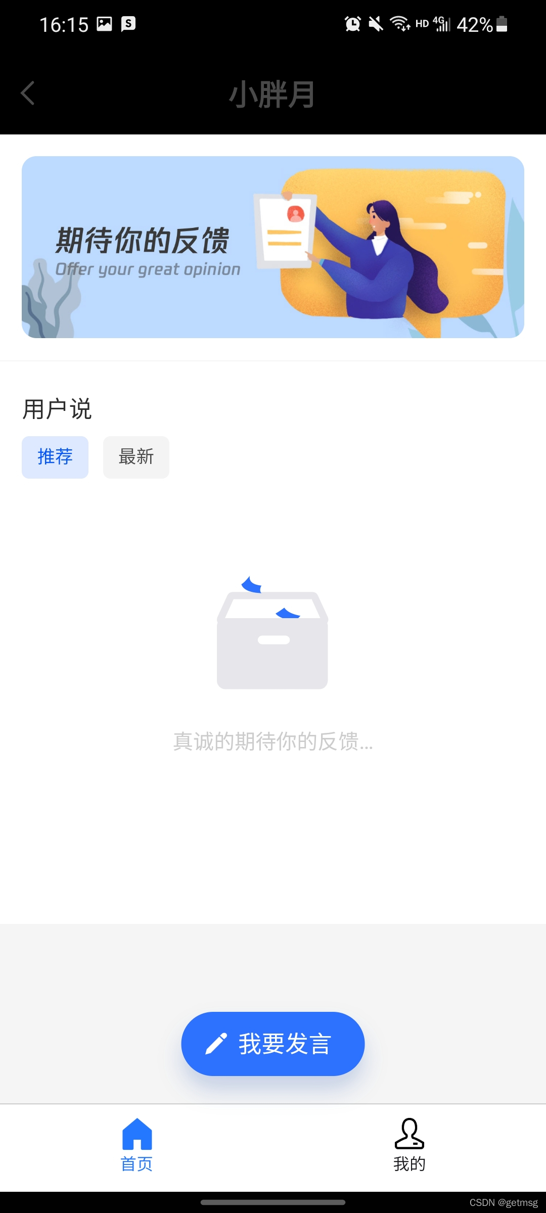 互动模块功能集成的是腾讯兔小巢组件,该组件是免费的,大家有兴趣自己去了解一下,基本上几行代码就能搞定。通过接入这个组件,省去了很多繁琐的需求功能开发。减轻了开发者的工作量,而且简单使用。