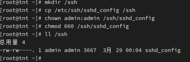 5、复制/etc/ssh/sshd_config文件到/ssh目录,admin账号可以查看并修改该文件内容。