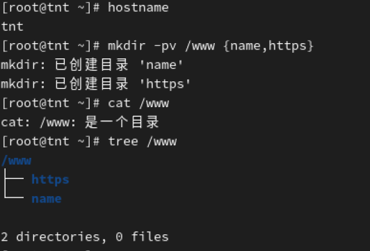 图一,创建了/www目录并在其下新建了name、https两个目录。