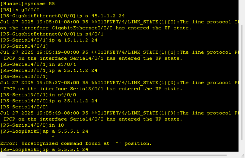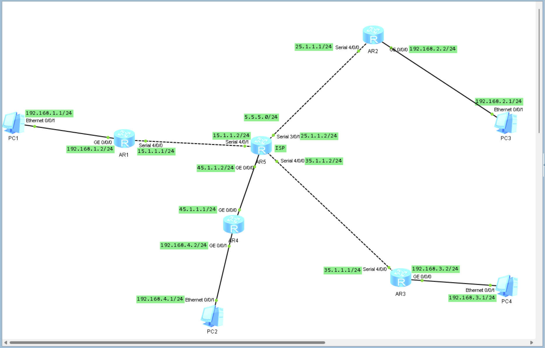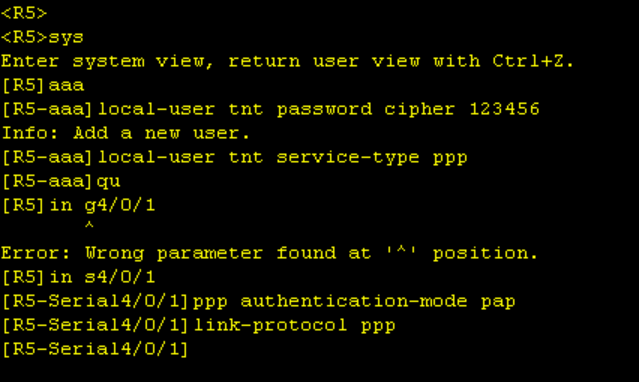 2、于R1和R5之间使用PPP的PAP认证,将R5配置为主认证方。