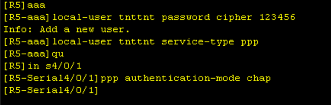 3、 于R2和R5之间使用PPP的CHAP认证,将R5配置为主认证方。