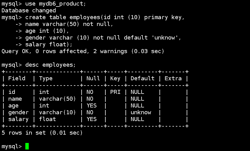1、创建并进入数据库