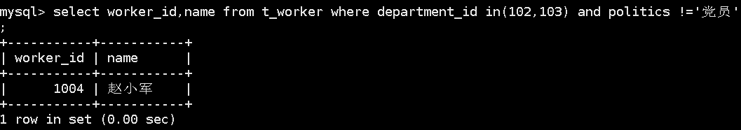 10、列出所有部门号为102和103且不是党员的职工号、姓名: