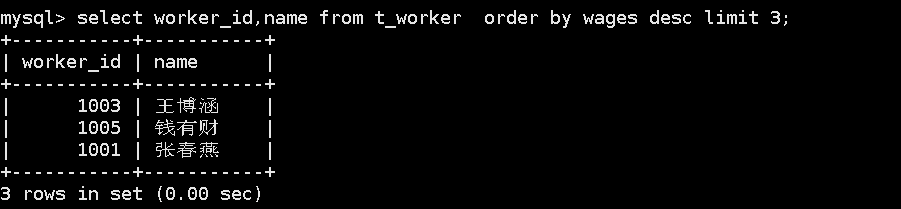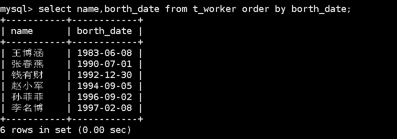 11、将职工表t_worker中的职工按出生的先后顺序排序: