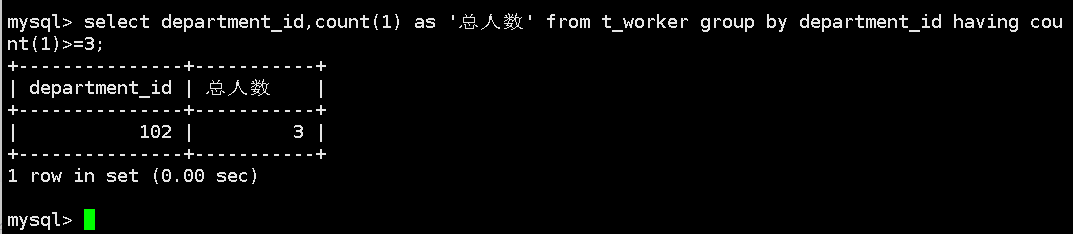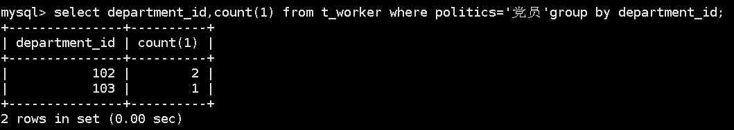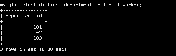 2、查询所有职工所属部门的部门号,不显示重复的部门号: