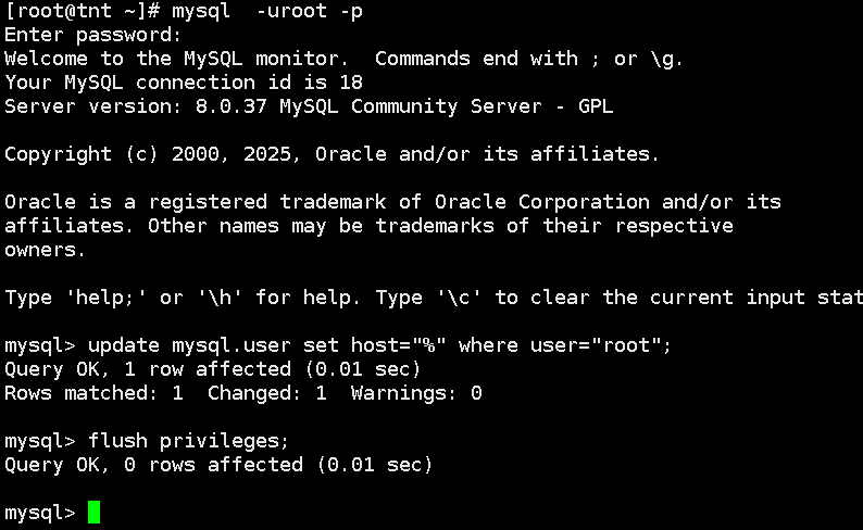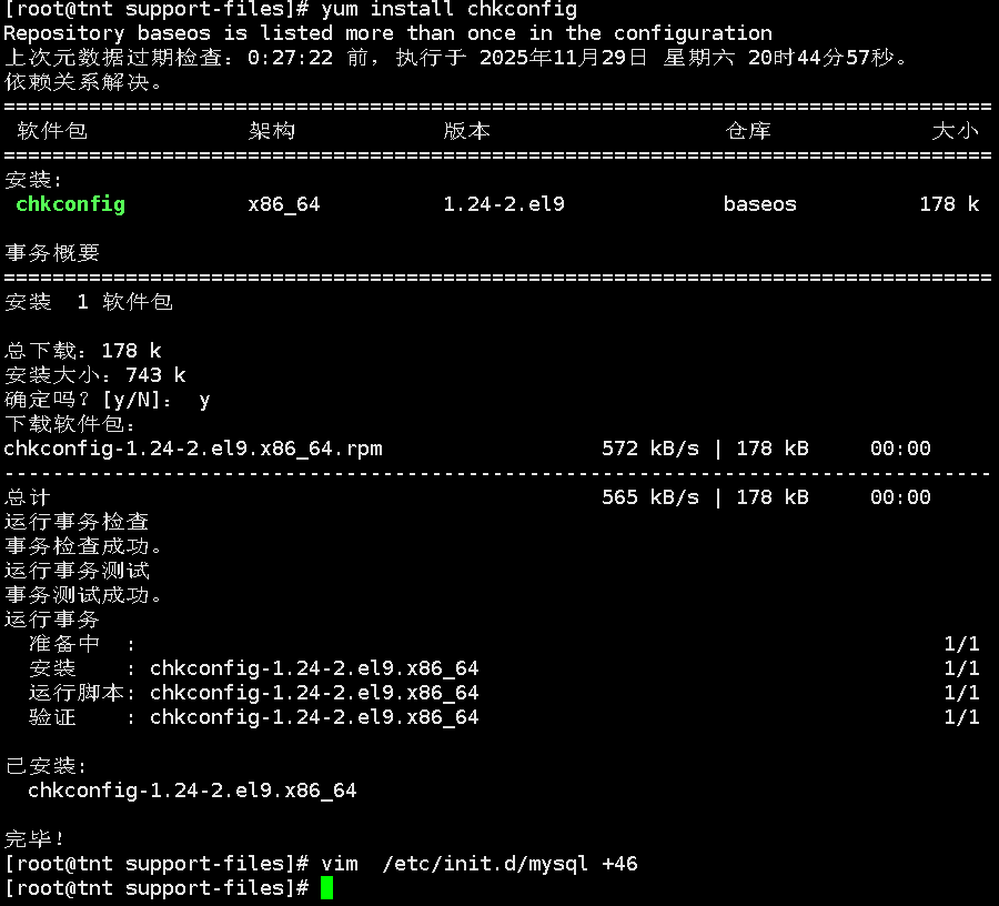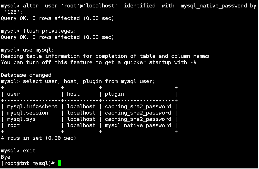 4、安装mysql并进行修改密码,两台虚拟机均进行如下操作: