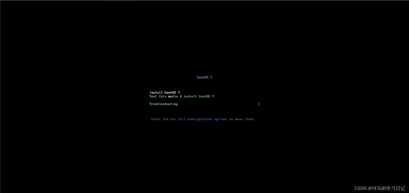 我们在开启虚拟机后第一步会出现这样,鼠标点击屏幕进入虚拟机后方向键上下来选择,在这里我们要选择第一个,当变白之后就表示我们选择的是这个,然后点击回车