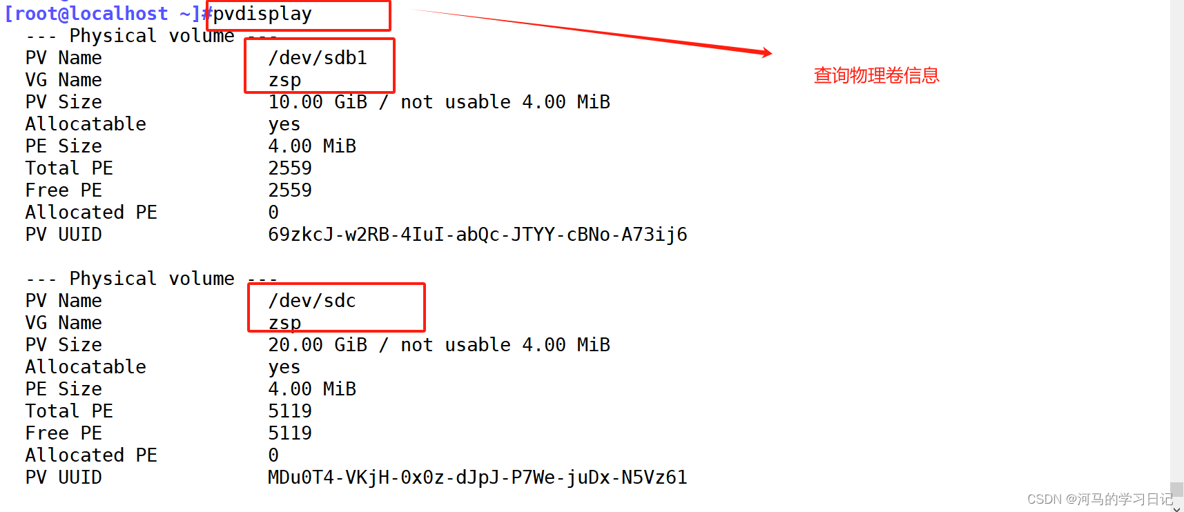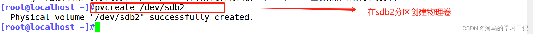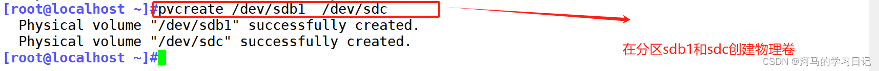 pvcreate + 设备名 创建物理卷