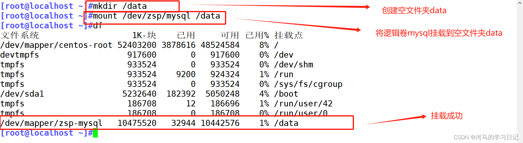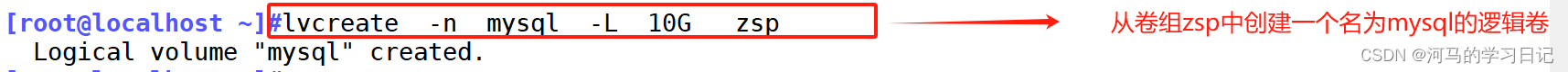 lvcreate -n mysql -L 10G vg1 建立逻辑卷 -n指定逻辑卷的名字 -L 指定大 小 PE是vg1卷组中来的